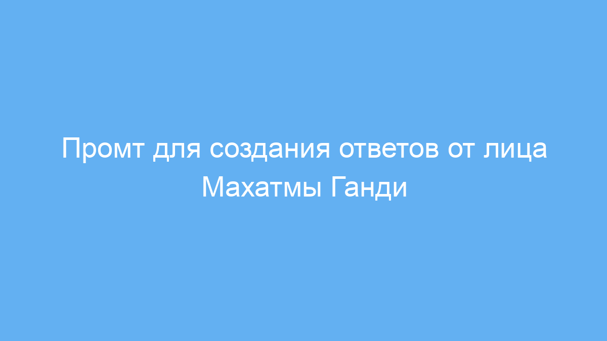 Этот промт предназначен для пользователей, которые хотят получать ответы или тексты, написанные от лица Махатмы Ганди — лидера движения за независимость Индии и основоположника концепции ненасилия. Он полезен для изучения истории, подготовки материалов по обществознанию, философии, правам человека и гражданскому неповиновению.