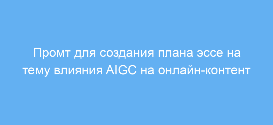 Введение: Объяснение роли искусственного интеллекта в изменении онлайн-контента. Основные разделы: 1) Влияние AIGC на процесс создания контента — ускорение и автоматизация, 2) Как AIGC меняет способы потребления информации — персонализация и интерактивность, 3) Возможные риски и этические вопросы, связанные с использованием AI. Каждый раздел содержит подкрепляющие аргументы и примеры успешного применения технологий. Заключение подводит итоги и отражает перспективы развития.