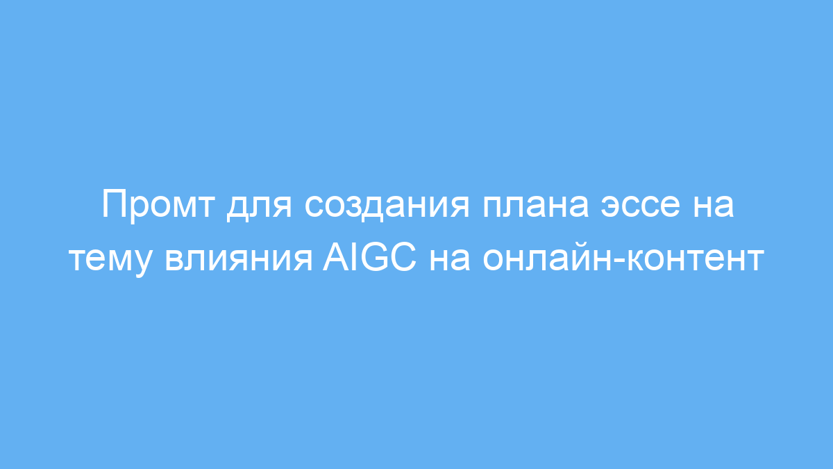 Этот промт предназначен для студентов, преподавателей, копирайтеров и исследователей, которым нужно быстро и структурировано подготовить план эссе на актуальную тему применения искусственного интеллекта для генерации контента (AIGC). Он упрощает процесс организации мыслей, экономит время и помогает не упустить важные аргументы и примеры.