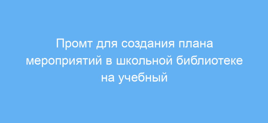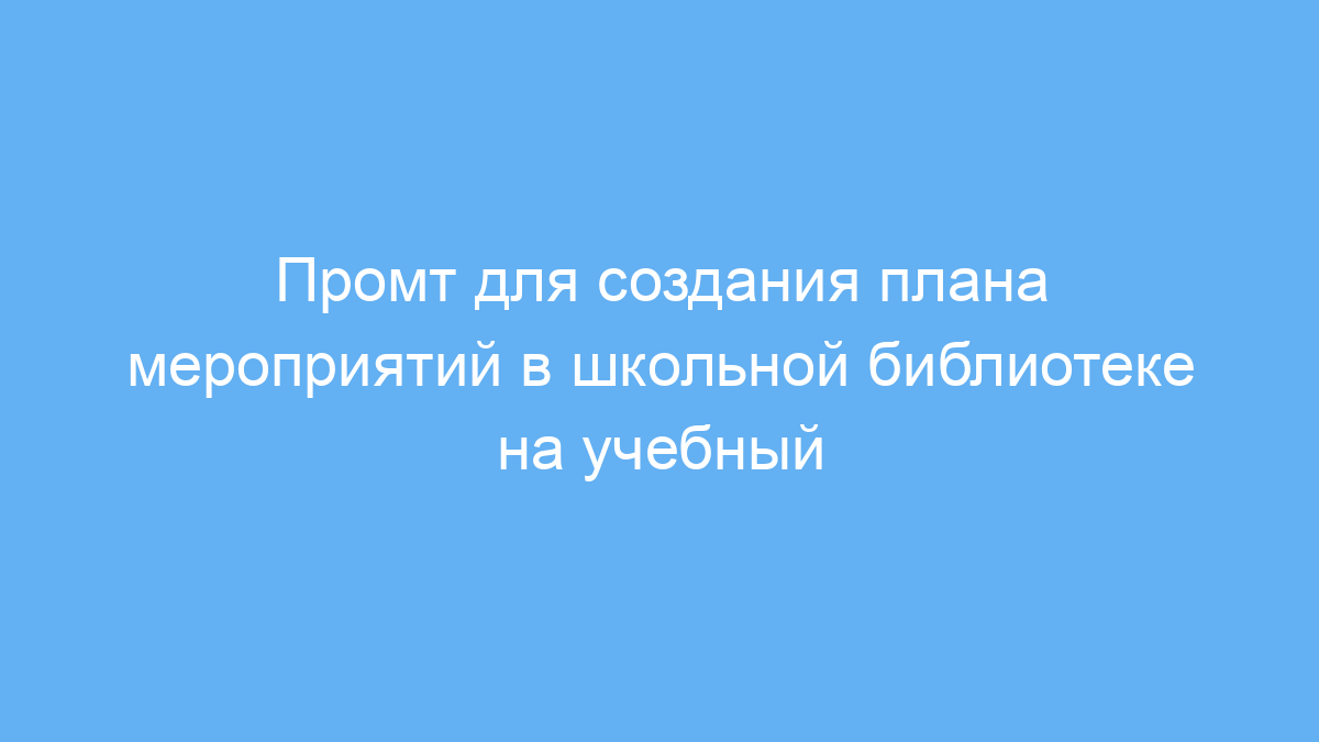 Этот промт создан для библиотекарей, преподавателей и организаторов школьных мероприятий, которые хотят спланировать интересную и тематическую программу для школьной библиотеки на учебный год. Он помогает быстро и удобно составить перечень разнообразных событий с учетом международных праздников и региональных особенностей.