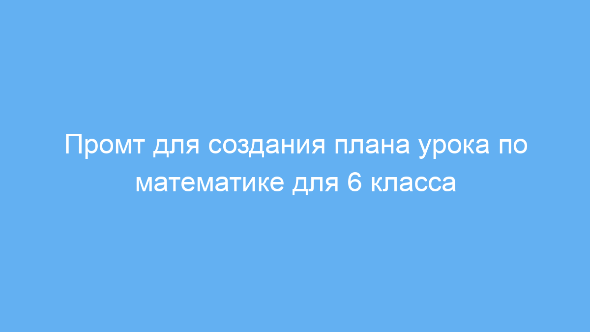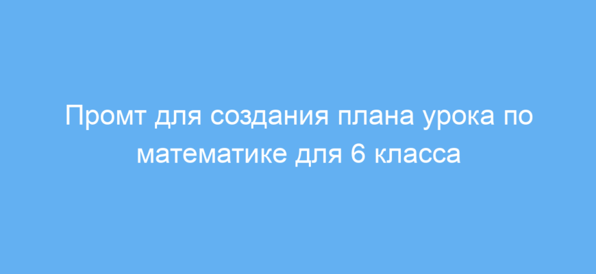 В основе работы промта — указание роли для нейросети (учитель математики 6 класса) и четкая структура ответа с обязательными разделами. Пользователь задаёт тему урока через переменную {{lesson}}, а нейросеть формирует полный план на основе учебных целей из учебника, что гарантирует соответствие стандартам образования.