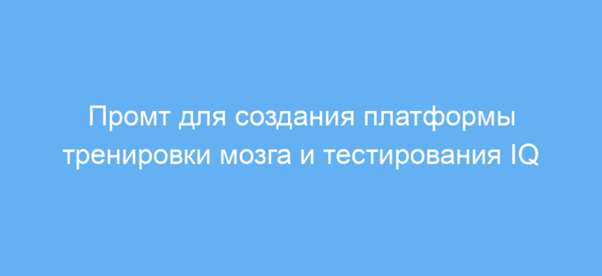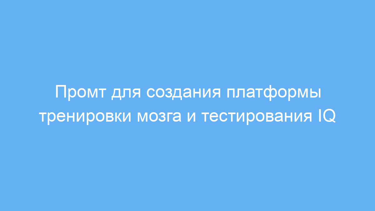 Этот промт предназначен для разработчиков, преподавателей и желающих улучшить свои умственные способности через интерактивные упражнения. Он помогает создать платформу, где пользователи смогут проверить уровень интеллекта и тренировать когнитивные навыки с помощью разнообразных головоломок и тестов.
