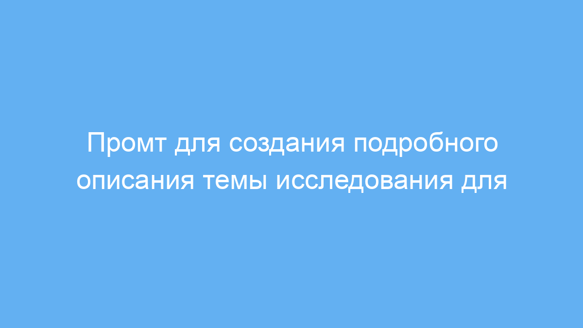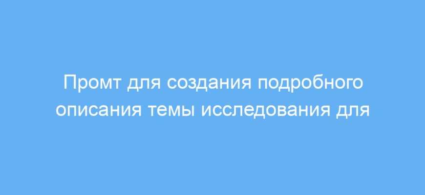 Этот промт значительно упрощает процесс создания сложного и убедительного описания исследовательской темы. Он помогает структурировать мысли и подробно раскрыть свои образовательные достижения и мотивацию. Кроме того, промт повышает качество заявки, делая акцент на личных целях и подготовке.
