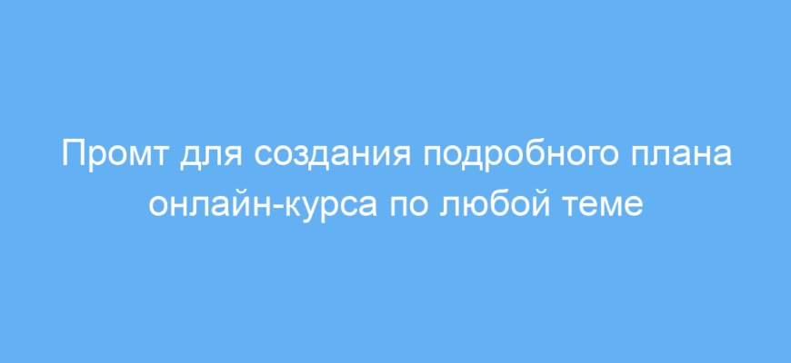 Этот промт упрощает процесс создания учебных курсов, помогая автоматически структурировать материал под нужный уровень знаний и тему. Вы экономите время на планирование и повышение качества образовательного контента.