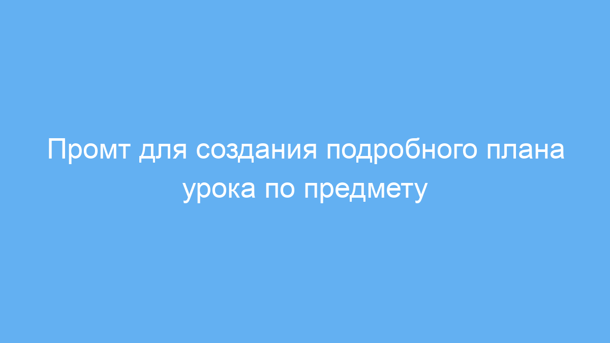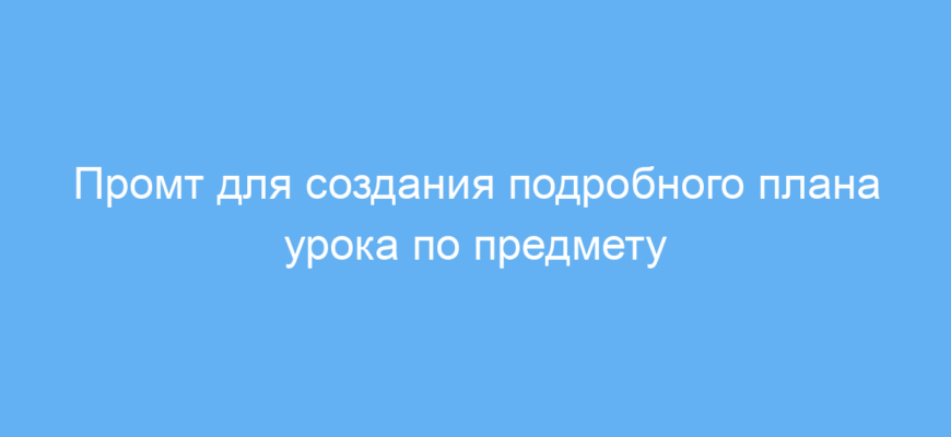 Принцип работы промта прост: вы указываете предмет и класс, а нейронная сеть генерирует детальный поэтапный план урока, который можно использовать полностью или адаптировать под свои нужды. Такой план может включать не только основные темы, но и рекомендации по проведению нескольких сессий, что подходит для длительных занятий или циклов уроков.