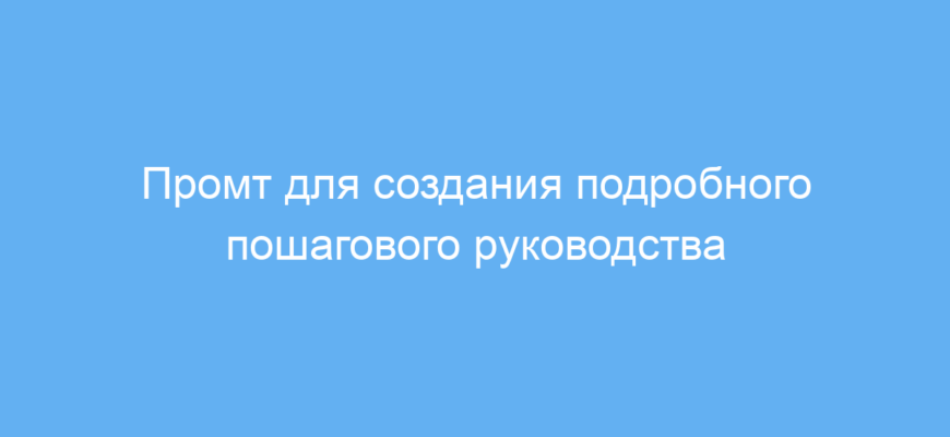 Этот промт предназначен для тех, кто хочет быстро получить понятное и структурированное руководство по любому действию. Он помогает создавать подробные инструкции, которые легко понять даже без специальных знаний. Это удобно как для обучения, так и для работы, когда нужна чёткая последовательность действий без лишней информации.