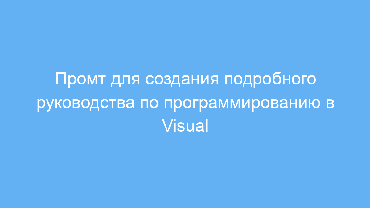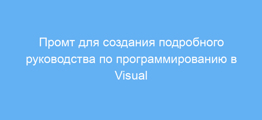Этот промт помогает быстро создать структурированное, понятное и интерактивное руководство по программированию с помощью Visual Studio. Он экономит время на планирование и написание учебных материалов, позволяя авторам сосредоточиться на адаптации и улучшении контента под конкретные потребности обучающихся.