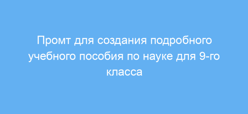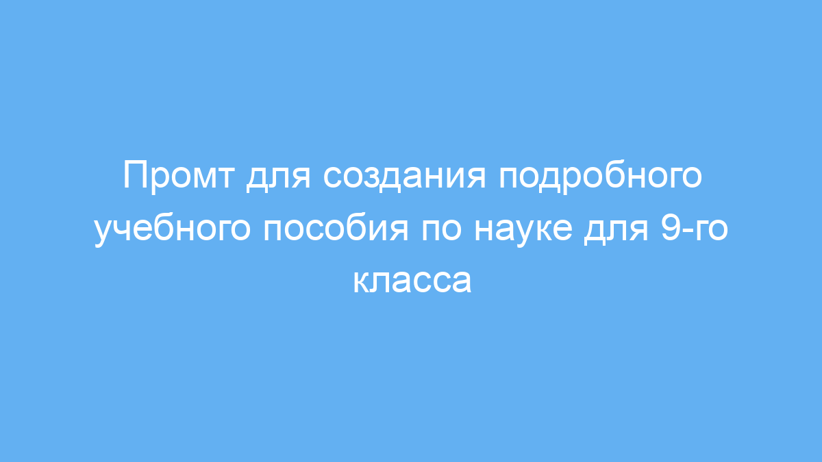 Этот промт предназначен для педагогов, учеников и репетиторов, которым нужно быстро и качественно создать учебные материалы по основным темам науки для 9-го класса. Использование промта помогает сэкономить время на сбор информации и написание конспектов, а также обеспечивает понятное и структурированное изложение материала.