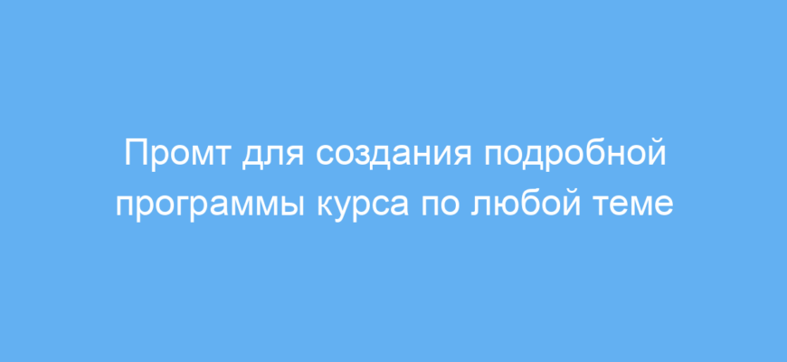 Перед отправкой промта замените [курс: название] на конкретную тему, которую хотите изучать. Например, «веб-разработка» или «искусственный интеллект».