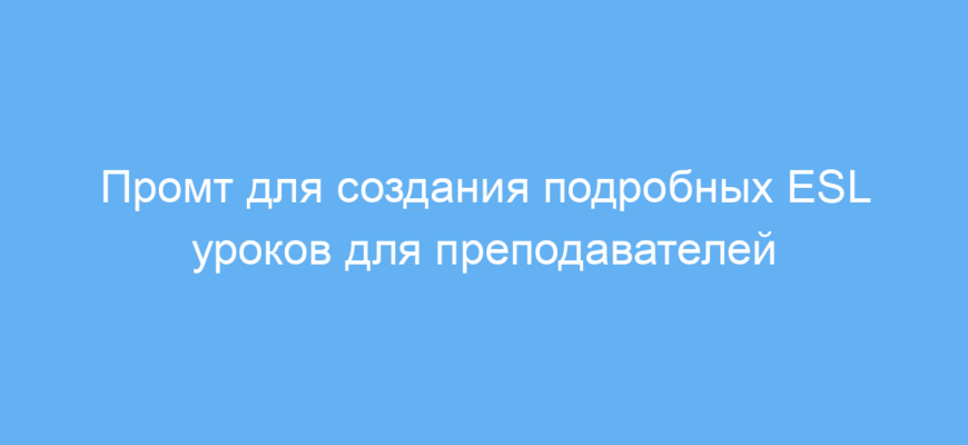 Этот промт значительно облегчает создание уроков ESL. Он помогает систематизировать материал, включает разнообразные задания и визуальные элементы, что улучшает усвоение языка. Преподавателю не нужно тратить время на продумывание структуры урока — всё готово для быстрого редактирования и использования.