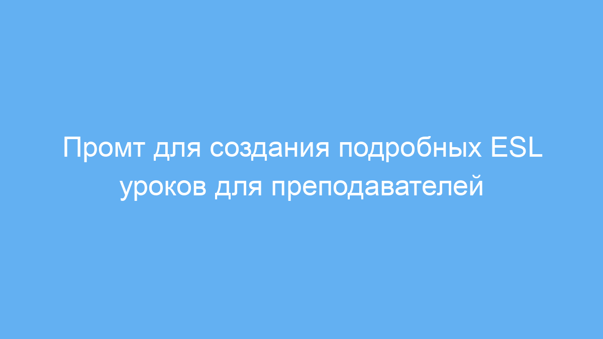 Этот промт предназначен для преподавателей английского языка как второго (ESL), методистов и разработчиков учебных материалов. Он помогает быстро создавать структурированные, полные и подробные уроки по заданным темам, грамматическим пунктам, уровню и возрасту учеников. Благодаря этому промту можно сэкономить время на подготовку уроков, сделать занятия более разнообразными и интерактивными.