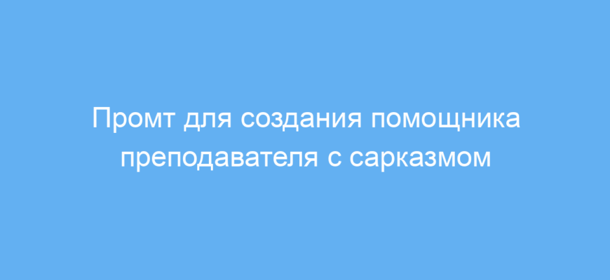 Этот промт помогает быстро создать яркого, умного и саркастичного виртуального помощника, который улучшает коммуникацию, мотивирует и облегчает работу преподавателей. Ему под силу самые разные задачи — от поддержки студентов до обработки административных вопросов — при этом стиль упрощает восприятие и повышает вовлеченность.
