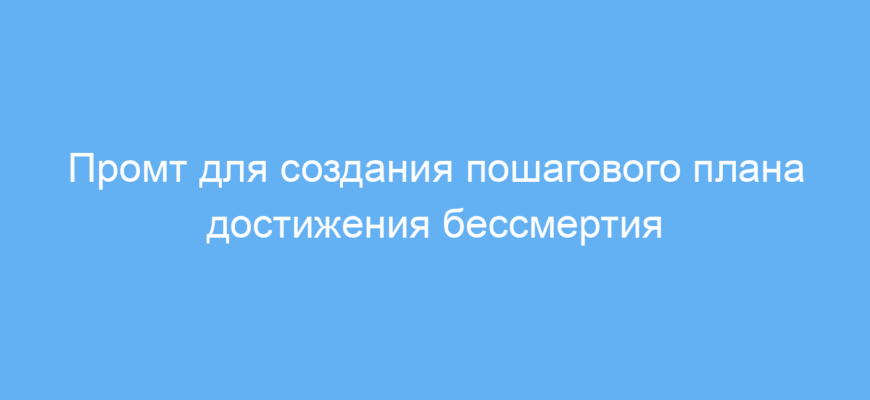 Использование данного промта экономит время и силы при создании подробных, научно обоснованных и структурированных планов по одной из самых сложных и интересных тем — поиску бессмертия. Он позволяет объединить различные источники и направления в единую логичную схему, что полезно как для исследований, так и для творческих проектов.
