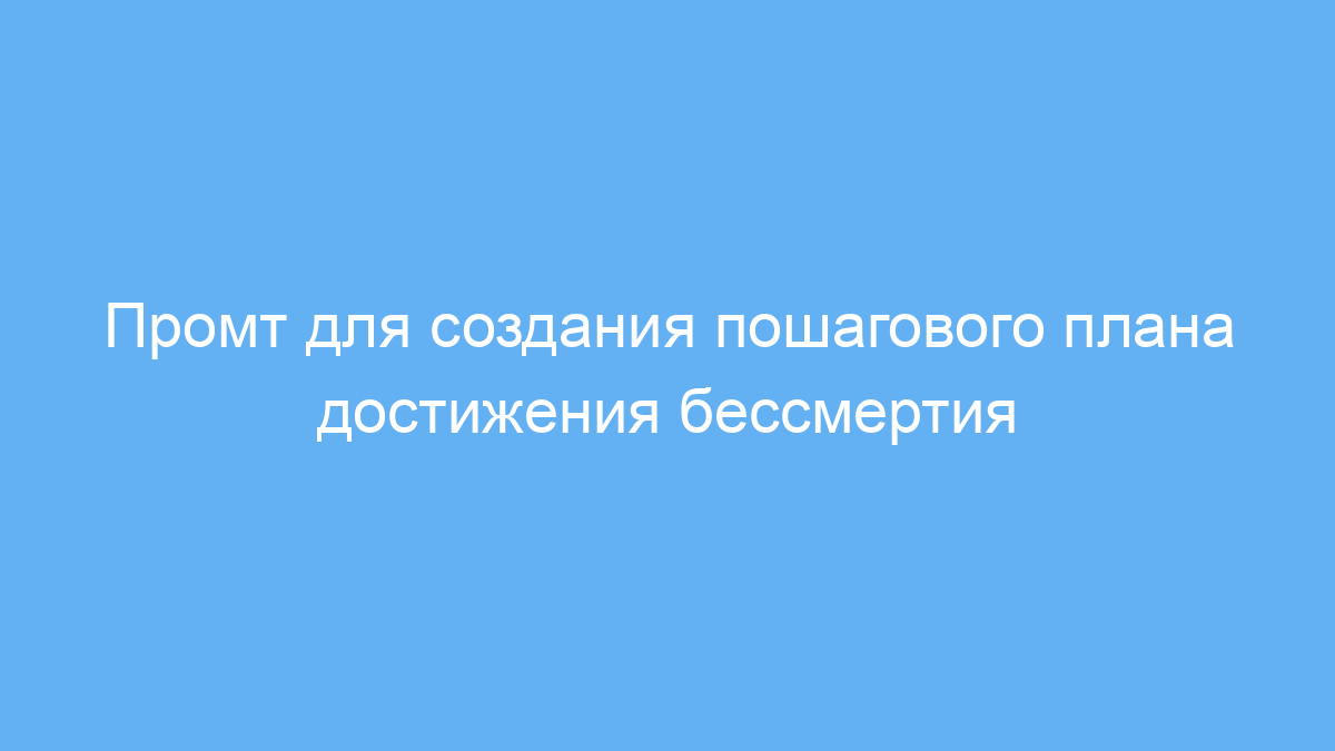 Этот промт предназначен для исследователей, писателей, энтузиастов науки и философии, а также для тех, кто интересуется вопросами продления жизни и стремится понять, какие методы и открытия приближают человека к бессмертию.