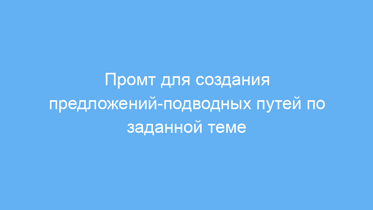 Этот промт предназначен для пользователей нейросетей, которые хотят создавать необычные и многозначные предложения. Такие предложения, называемые предложениями-подводными путями, выглядят как бессмысленные на первый взгляд, но при внимательном анализе раскрывают скрытый логический смысл. Это помогает в лингвистических играх, обучении грамматике, развитии критического мышления и креативности.