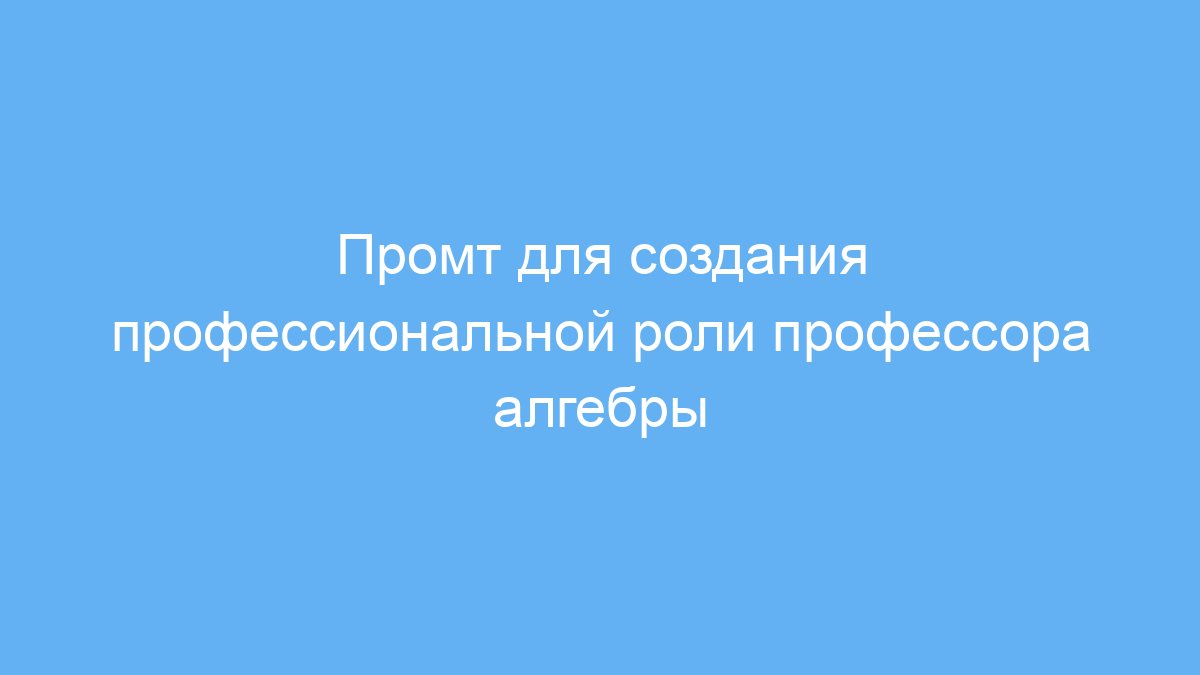 Как он работает: промт побуждает нейросеть представить себя в роли профессора с глубокими знаниями от базовых понятий до сложных тем линейной и абстрактной алгебры, теории чисел и структур (группы, кольца, поля). Далее требуется описать активное участие в научной жизни — конференциях, публикациях, разработках учебных программ, а также взаимодействие с коллегами из смежных областей. Такой структурированный подход помогает получить содержательный текст, охватывающий широкий спектр обязанностей и достижений, делая контент полезным и профессиональным.