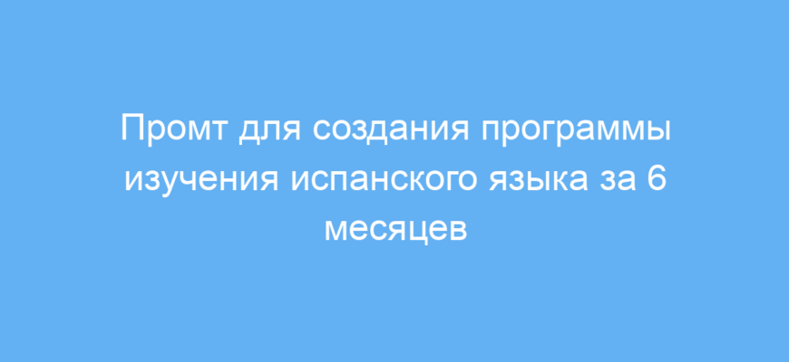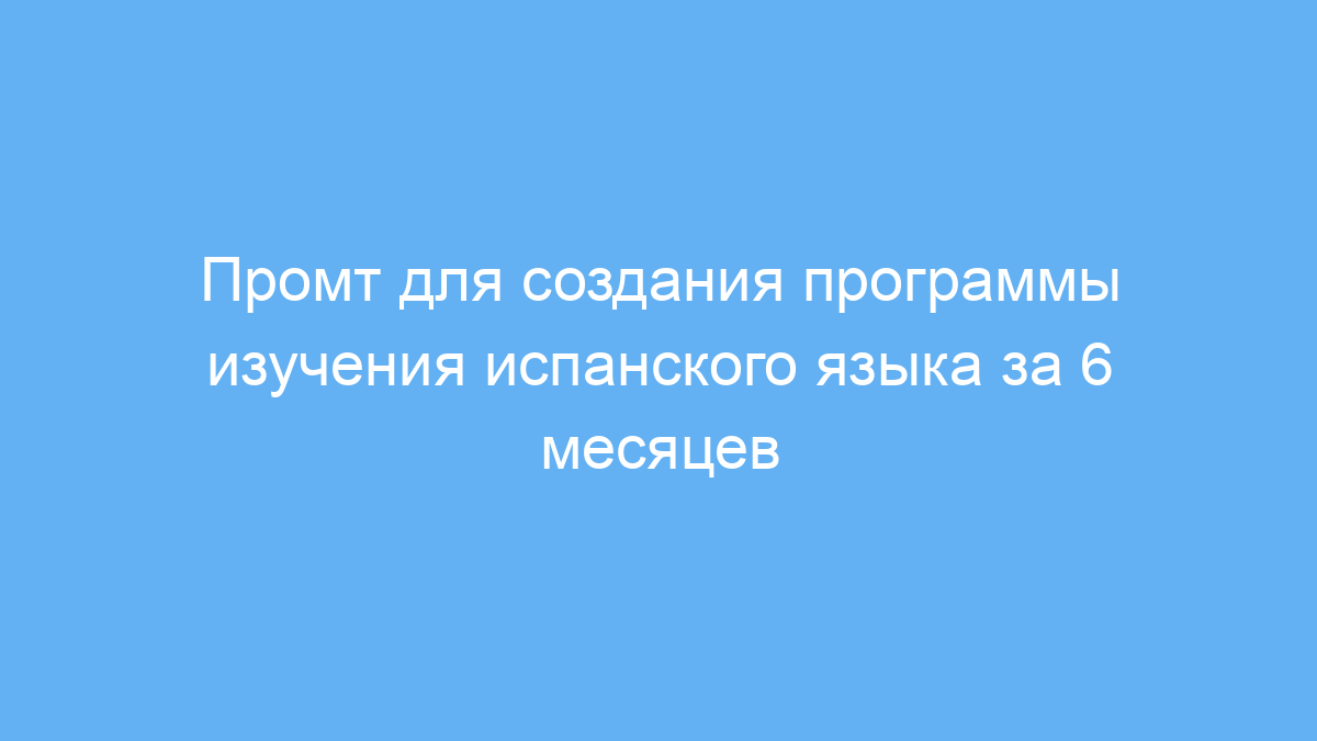 Этот промт предназначен для тех, кто хочет самостоятельно или с помощью ИИ создать эффективную программу изучения испанского языка с нуля и достичь разговорного уровня всего за шесть месяцев. Особенно он подойдет начинающим, желающим быстро освоить практические навыки речи и аудирования, а также получить культурные знания о странах, где говорят на испанском.