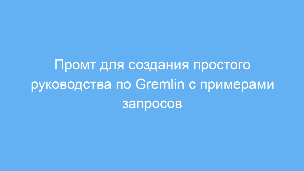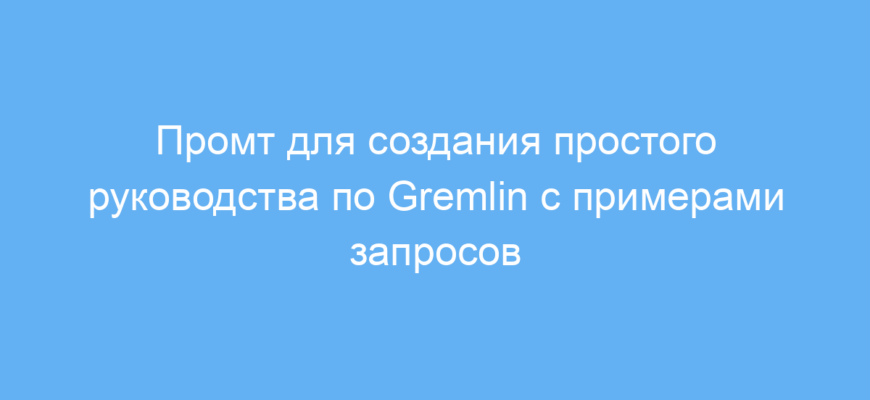Этот промт помогает быстро получить понятное и простое руководство по Gremlin, без лишней технической сложности. Вы сэкономите время на поиске информации и сможете сразу приступать к практике с готовыми примерами запросов.