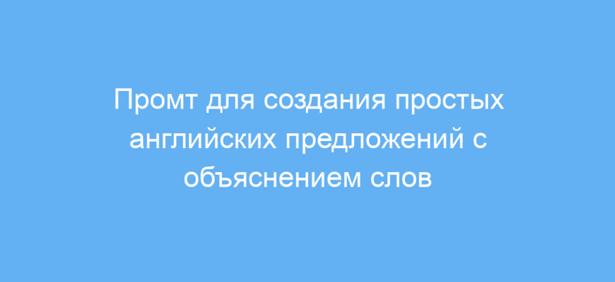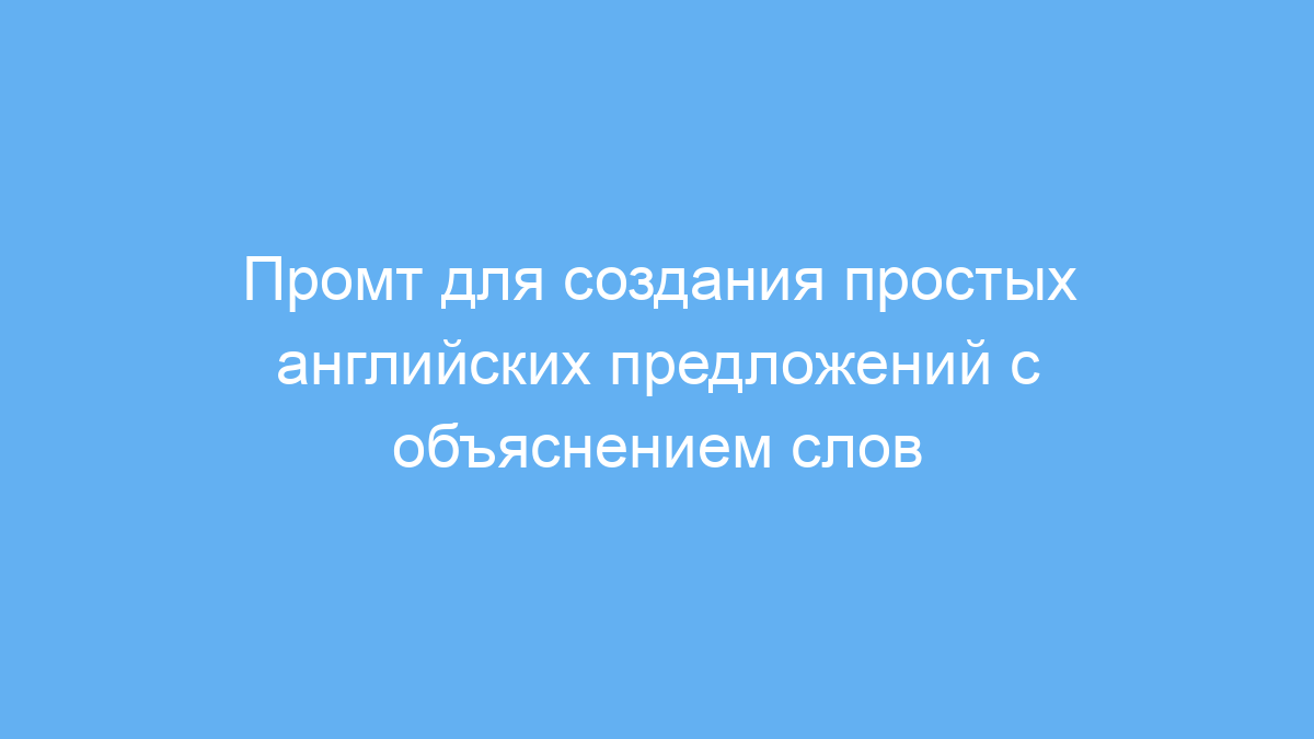 Этот промт позволяет быстро создавать простые и понятные пояснительные предложения на английском языке, что особенно ценно для начинающих учеников. Он экономит время преподавателей и помогает учителям создавать учебные материалы высокого качества, адаптированные под детский уровень.