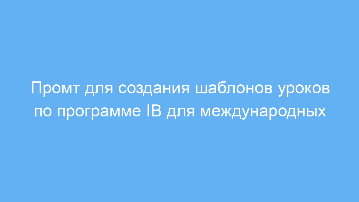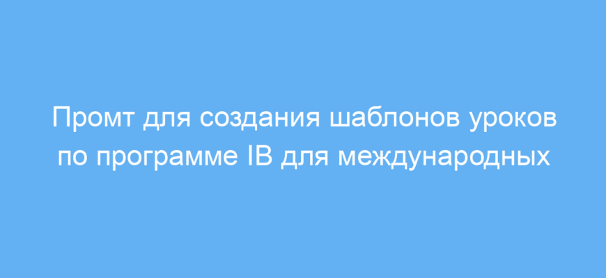 Этот промт является мощным инструментом, позволяющим учителям эффективно создавать адаптированные уроки под международные стандарты IB. Он упрощает подбор материалов, формирует структуру с учётом индивидуальных особенностей учащихся и помогает интегрировать важные навыки и ценности, заложенные в профиле IB Learner Profile.