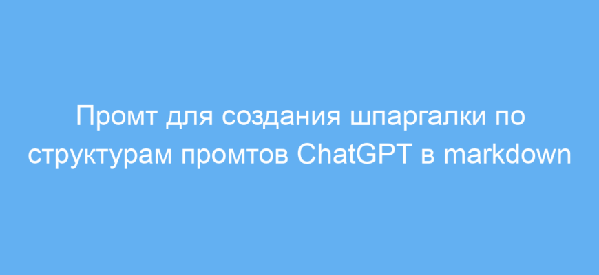 Этот промт помогает быстро создавать удобные и понятные шпаргалки с разными шаблонами промтов для ChatGPT. Такой инструмент ускоряет обучение и позволяет подобрать наиболее эффективный способ формулировки запроса под конкретную задачу. Использование таблиц улучшает восприятие и помогает видеть вариативность подходов.