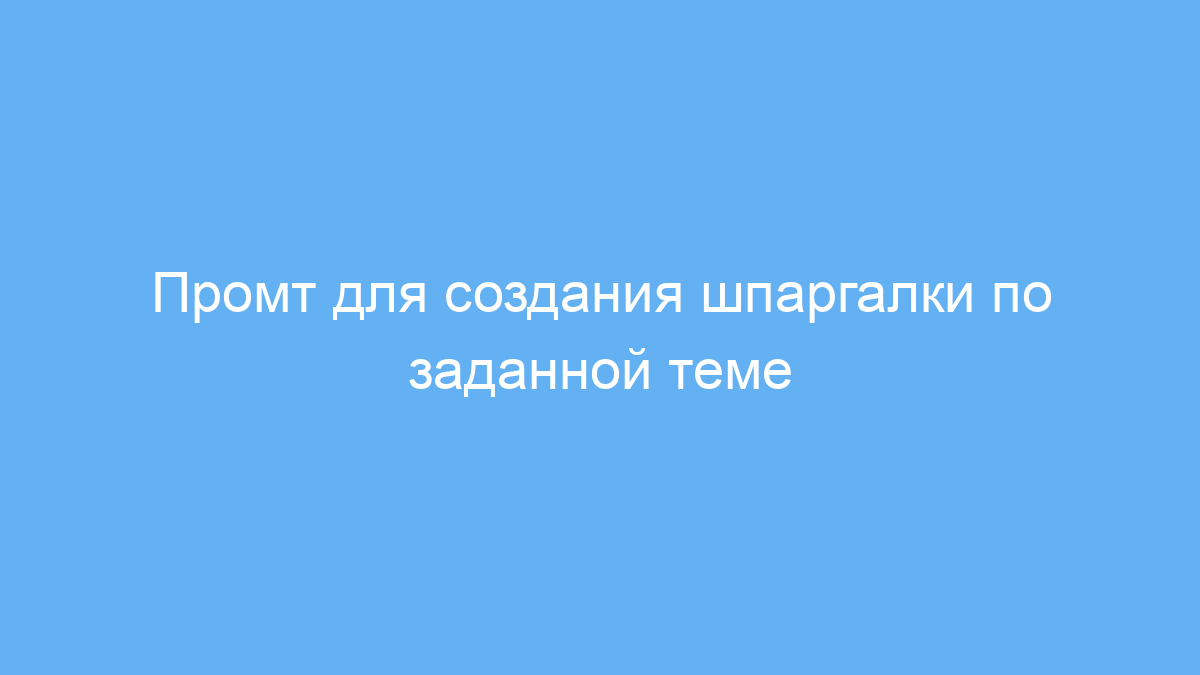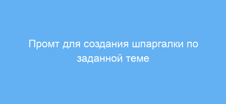 Этот промт позволяет быстро получить структурированную и полную шпаргалку по нужной теме. Он значительно экономит время на сбор и обработку информации, делает знания удобными для запоминания и дальнейшей работы.