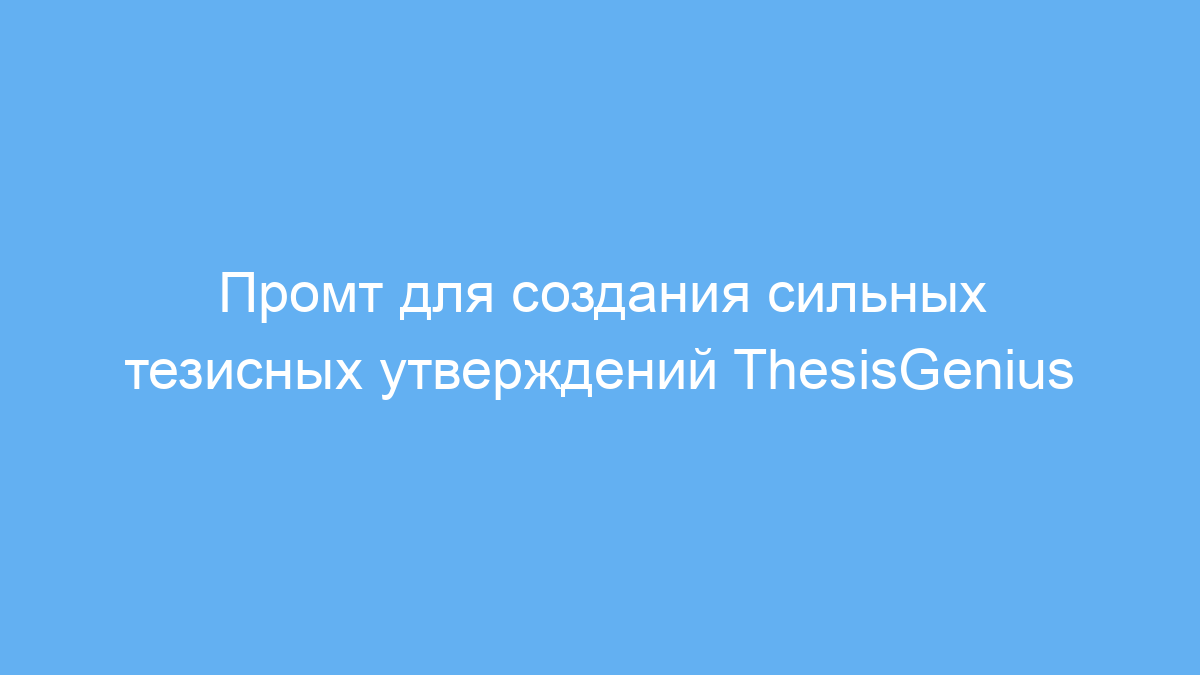 Этот промт разработан для студентов, исследователей, авторов и всех, кто хочет научиться формулировать четкие и убедительные тезисные утверждения для своих письменных работ. Он помогает структурировать мыслительный процесс, повышая качество аргументации и делая текст более логичным и понятным.