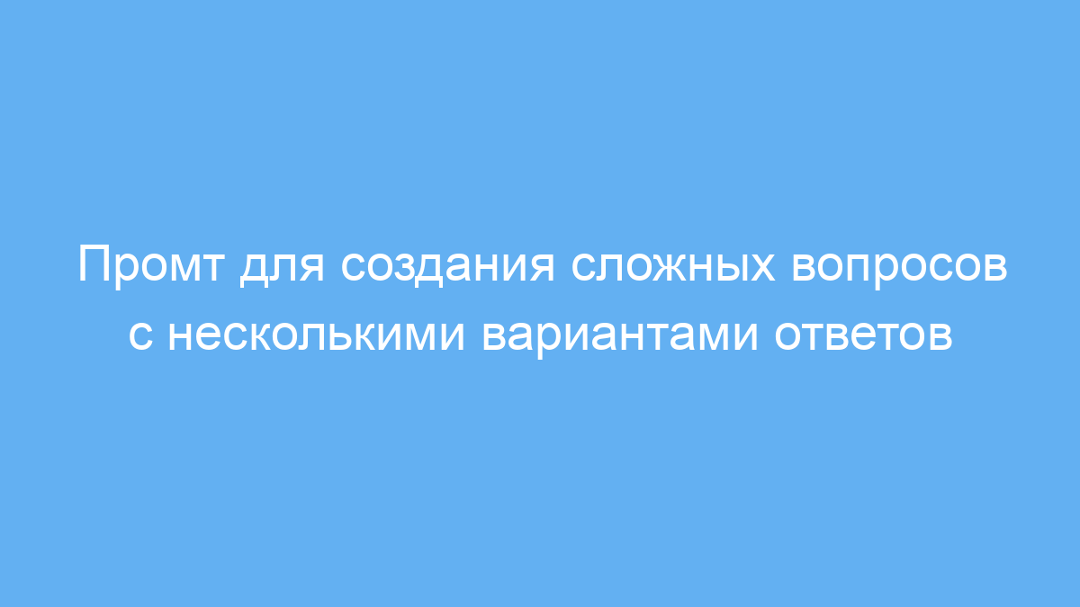 - Четко указывайте желаемый уровень сложности и тип вопросов (например, общие знания, анализ, логические задачи), чтобы получить максимально релевантные варианты.