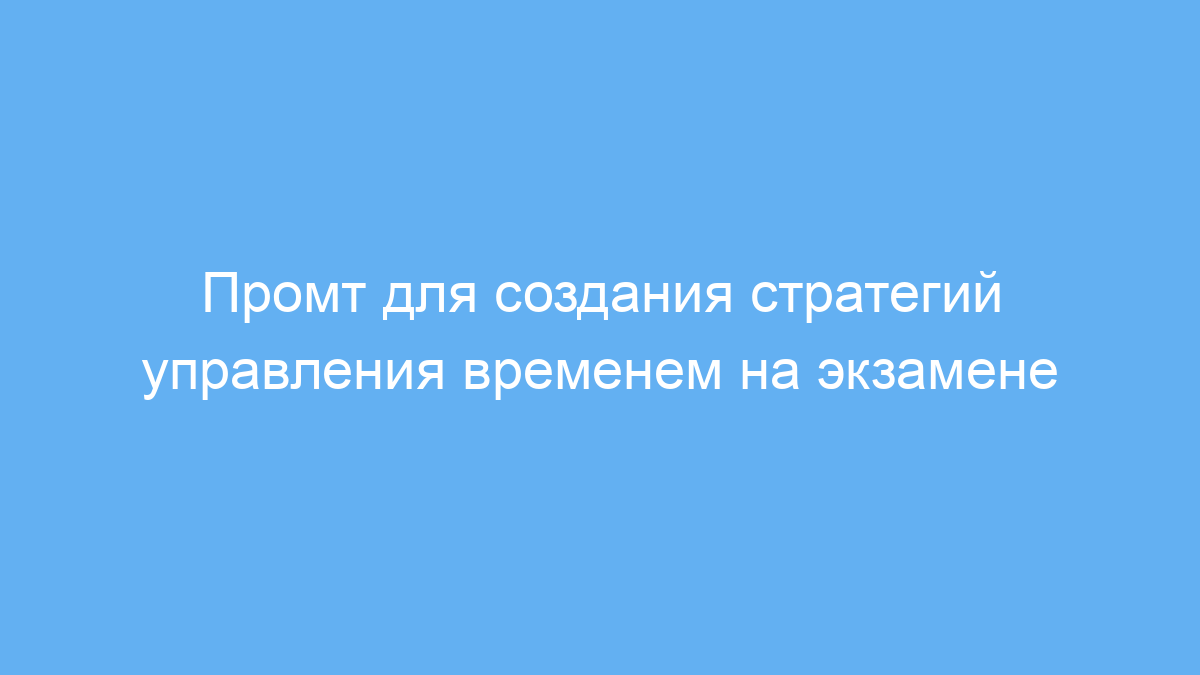 Промт решает проблему нехватки времени и неоптимального распределения усилий на экзамене. Он помогает понять, как правильно распределить время на каждое задание в зависимости от его сложности и значимости. Это значительно повышает шансы успешно сдать экзамен.