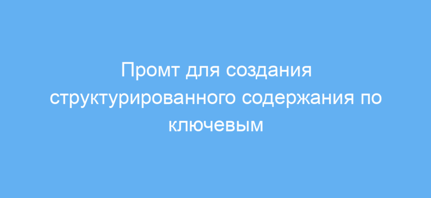Промт решает задачи систематизации информации и ускоряет создание основ структуры статей, учебных материалов или справочников. Вместо того чтобы долго придумывать структуру и темы, пользователь сразу получает подробно прописанные разделы с описанием ключевых тем.