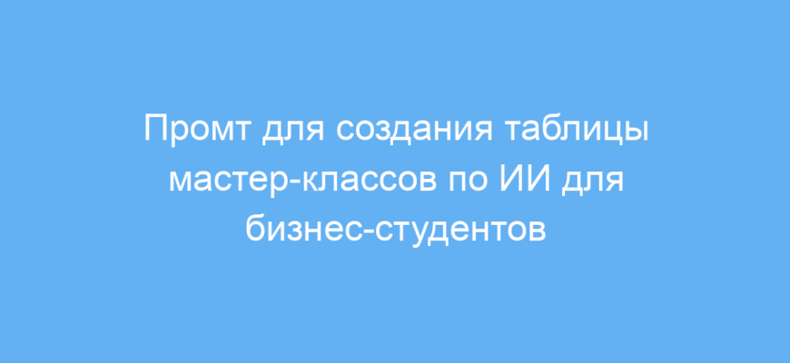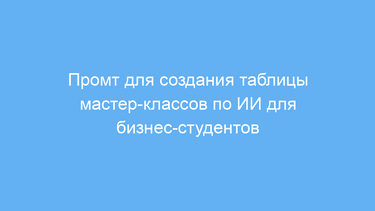 Этот промт предназначен для преподавателей, организаторов образовательных программ или студентов, которые хотят разработать структурированную серию мастер-классов по искусственному интеллекту (ИИ). Особенно он полезен для тех, кто планирует обучение для начинающих — например, для первокурсников бизнес-школы, которые не знакомы с ИИ, но хотят понять его основы и практические применения.
