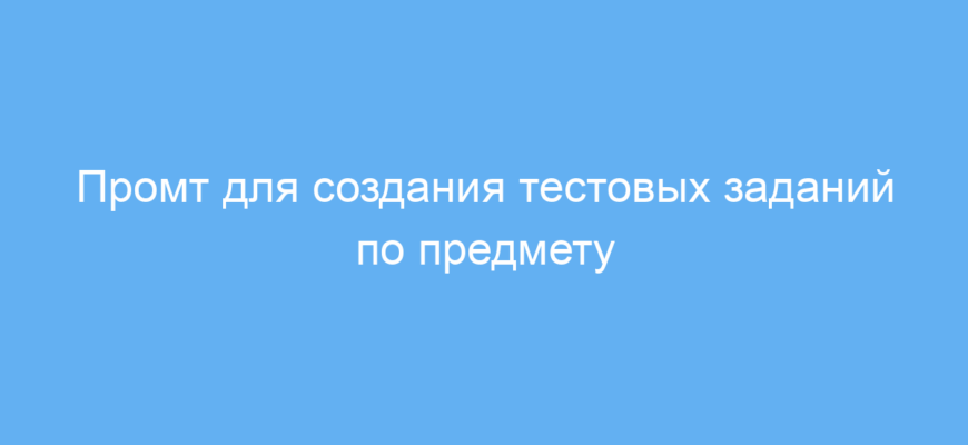 Промт облегчает и ускоряет процесс составления тестов, снимая необходимость придумывать каждый вопрос вручную. Он генерирует варианты заданий, начиная от простых фактических вопросов и заканчивая сложными аналитическими, учитывая специфику выбранного предмета.