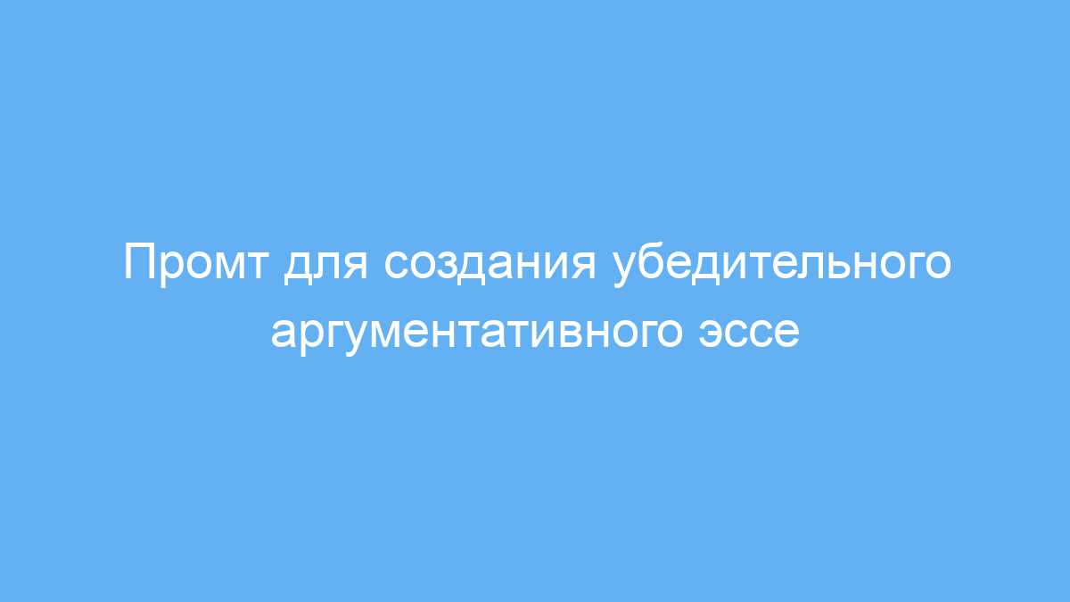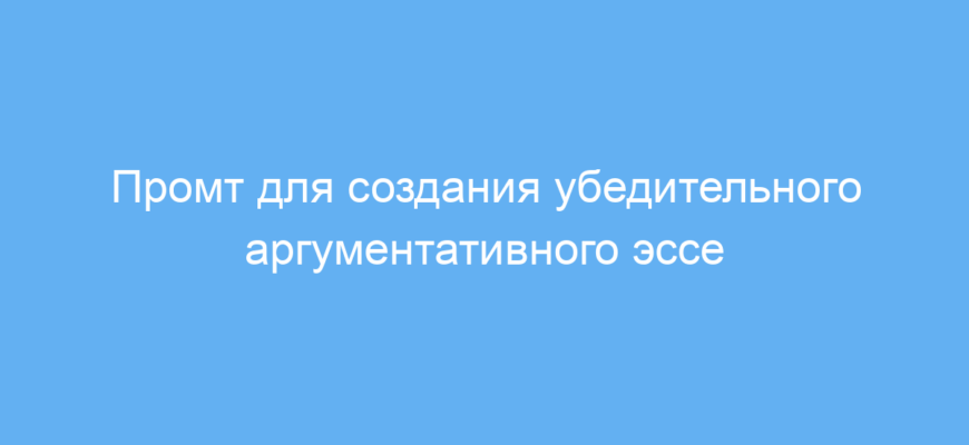 Этот промт предназначен для студентов и всех, кто учится писать аргументативные эссе. Он помогает структурировать мысли, формулировать сильный тезис, подкреплять его надежными доказательствами и логично развивать аргументы. Использование промта решает проблемы с пониманием базовых элементов аргументативного текста, помогает сделать эссе более убедительным и связным.