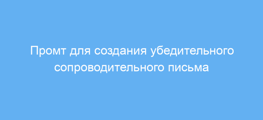 Этот промт предназначен для соискателей работы, рекрутеров и специалистов по кадровому подбору, которым важно быстро и грамотно составить сопроводительное письмо. Сопроводительное письмо — ключевой элемент при отклике на вакансию. Оно помогает выделиться среди других кандидатов и привлечь внимание работодателя.