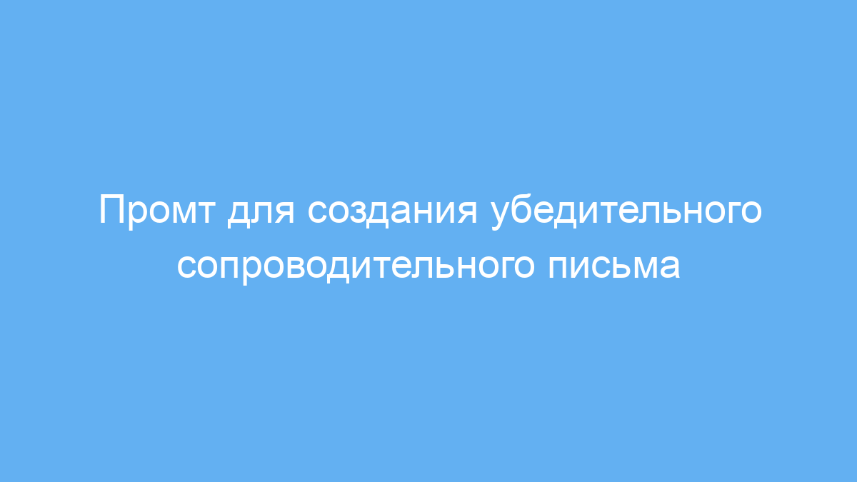 Промт решает проблему неопределённости в структуре и содержании письма, помогая создать логичный, убедительный текст, который подчёркивает ваши навыки и опыт в соответствии с требованиями вакансии. Он направлен на улучшение шансов получить приглашение на собеседование.