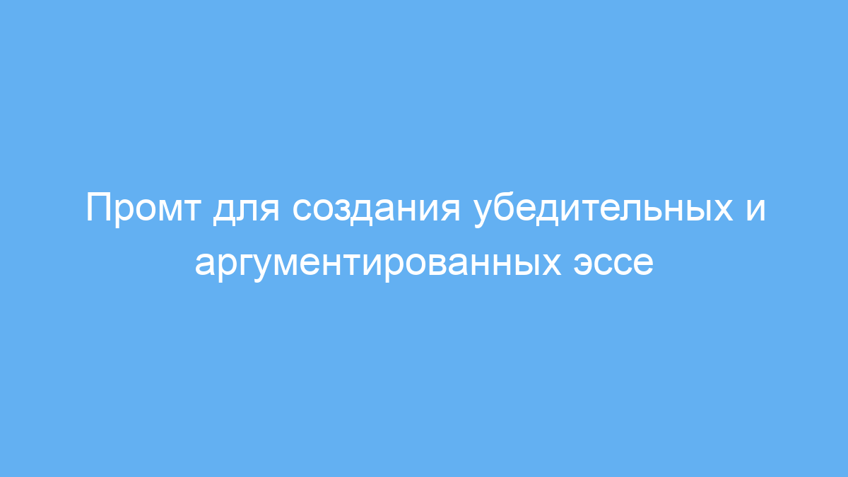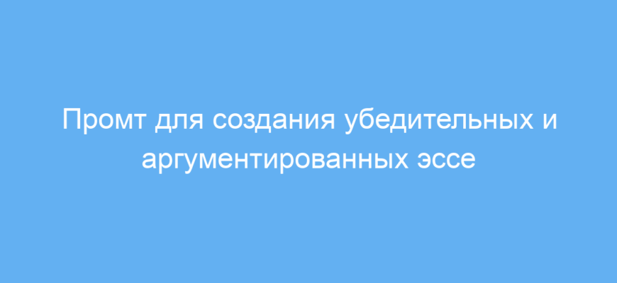 Использование этого промта экономит время и упрощает процесс написания убедительных эссе. Он помогает четко структурировать мысли, логично выстроить аргументы и продумать контраргументы. С его помощью вы создадите качественные тексты, которые легко воспринимаются и впечатляют проверяющих.