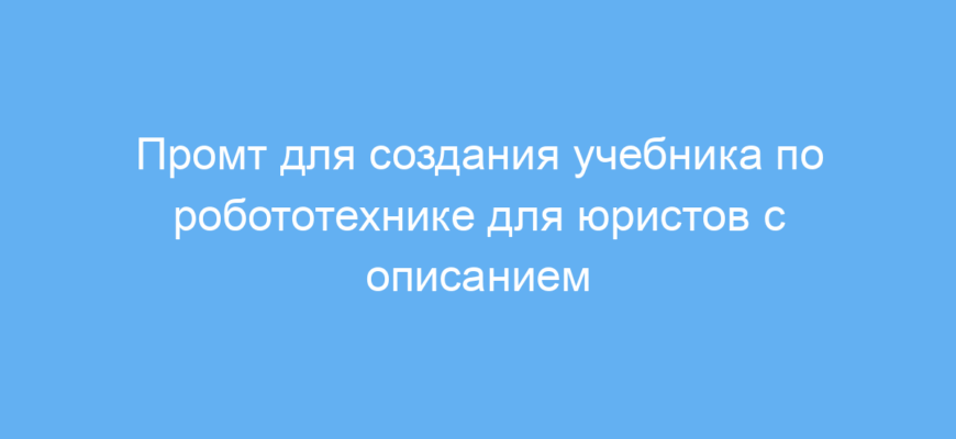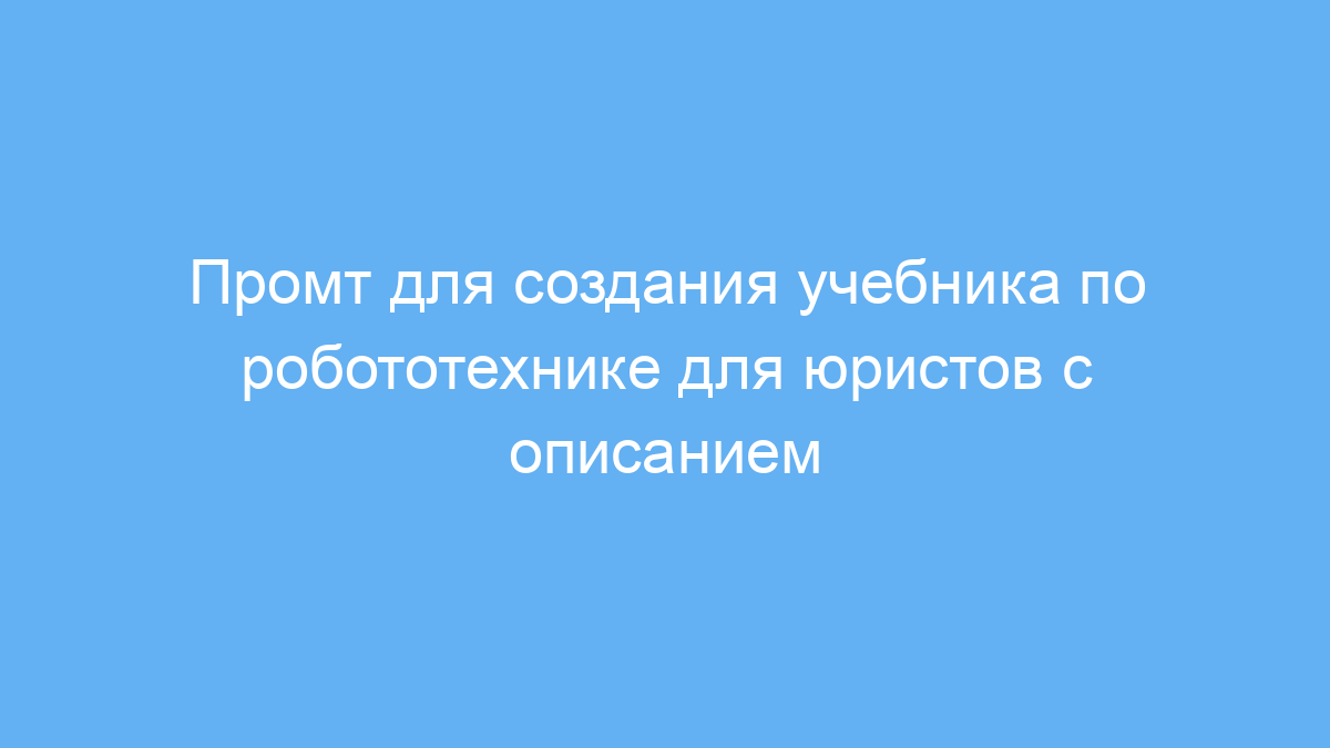 Этот промт предназначен для специалистов и студентов, которым нужно получить понятное и максимально подробное объяснение основ робототехники. Особенно он полезен для людей, не имеющих технического образования, например, для юристов или представителей других гуманитарных профессий. Промт помогает адаптировать сложный материал и визуальные элементы так, чтобы они были легко восприняты даже при «юридической слепоте» — когда термины и технические детали вызывают затруднения.