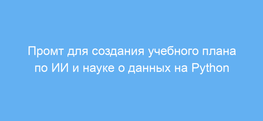 Данный промт помогает быстро и эффективно получить структурированный учебный план по ИИ и науке о данных с использованием Python. Это экономит время на подготовку материала и обеспечивает системность обучения. Такой подход облегчает организацию курсов и помогает фокусироваться на главном.