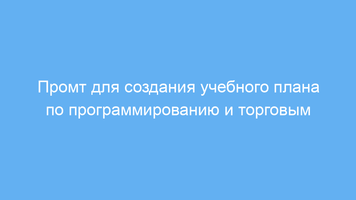 Этот промт существенно облегчает создание комплексного учебного плана, помогает структурировать обучение и включить все важные аспекты программирования и разработку торговых ботов. Он экономит время, снижает риск пропустить важные темы и служит основой для успешного освоения материала.