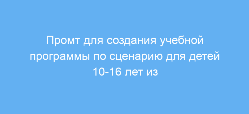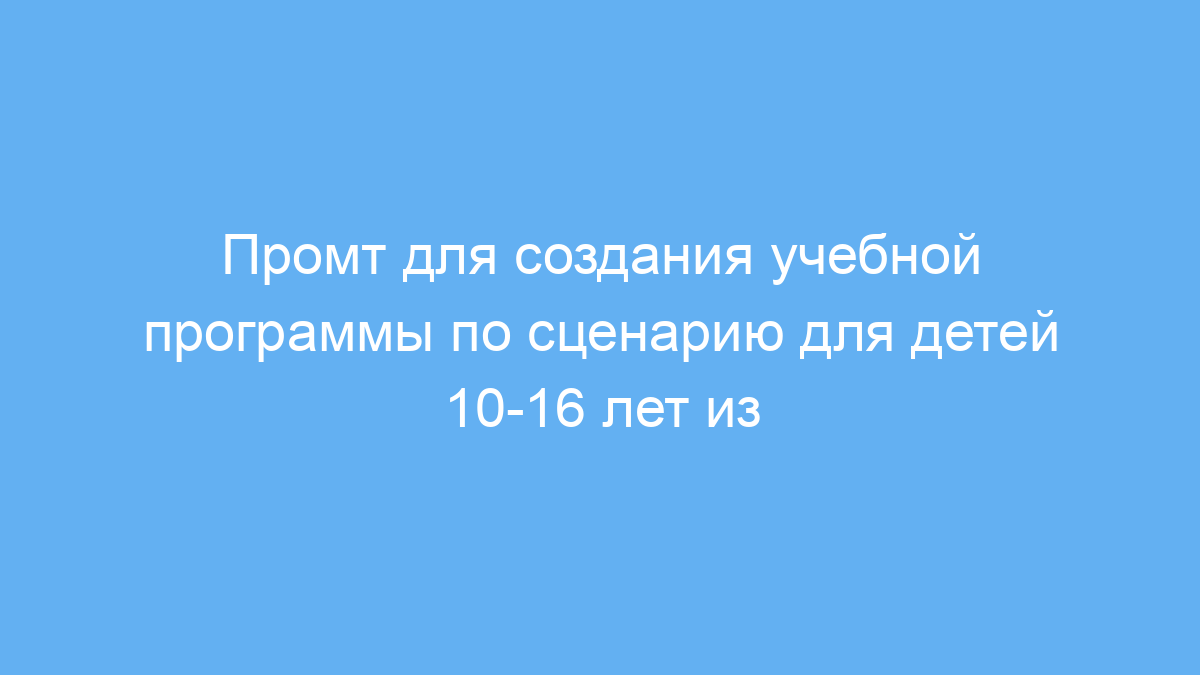 Принцип работы промта прост: нейросеть получает команду составить подробную учебную программу с учетом конкретных требований — возраста детей, региона и формата подачи материала. В ответ она формирует ясный, структурированный сценарий с использованием историй для закрепления знаний.