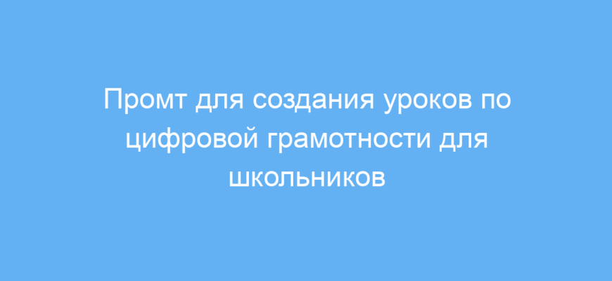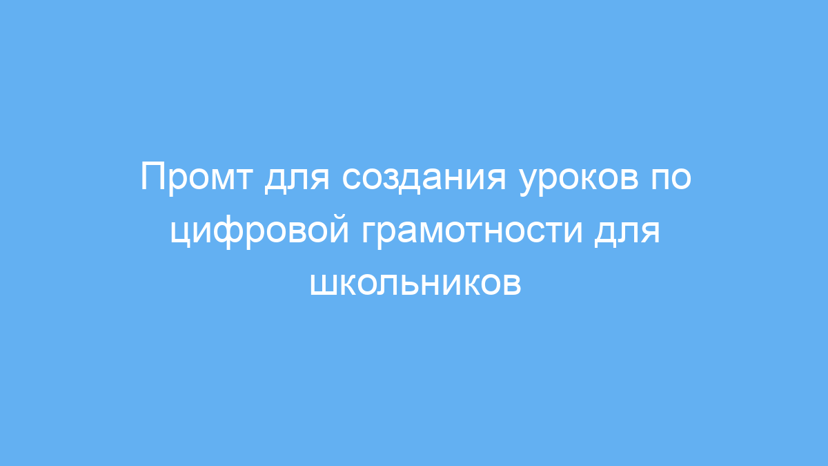Использование данного промта помогает значительно упростить и ускорить подготовку уроков по цифровой грамотности. Он обеспечивает структурированный подход к выбору материала с учётом возраста и темы, предлагает готовые шаблоны с адаптациями. Это экономит время и гарантирует соответствие учебного плана современным требованиям.