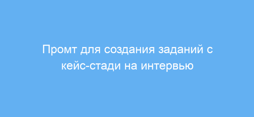 Этот промт предназначен для интервьюеров, которые разрабатывают задания с кейс-стади для оценки кандидатов. Используя его, можно быстро и структурировано формировать сложные задачи, адаптированные под профессиональный уровень интервьюируемых. Это помогает стандартизировать интервью, сделать его более объективным и сбалансированным по сложности.