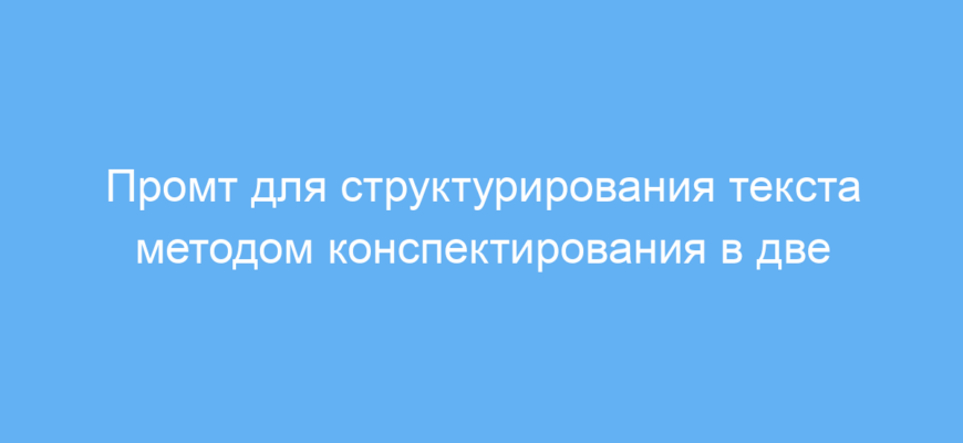 Этот промт значительно облегчает и ускоряет процесс создания учебных конспектов и рабочих заметок. Он помогает структурировать информацию понятно и наглядно, что важно для быстрого усвоения и повторения материала.