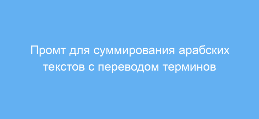 Промт работает следующим образом: вы отправляете текст на арабском, нейросеть выделяет главные пункты, формирует связное резюме, а затем выводит важные английские термины с переводом. После этого вас спрашивают, хотите ли вы получить правильное арабское написание и произношение этих терминов. Вы контролируете процесс и получаете только нужные пояснения.