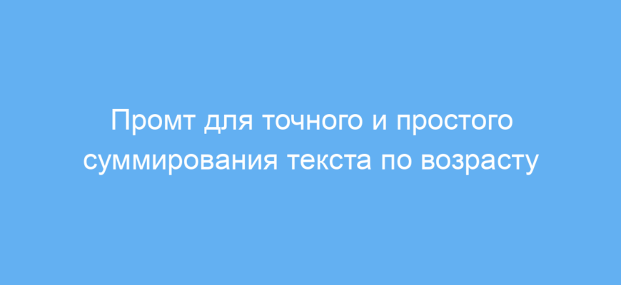 Этот промт помогает быстро получать лаконичные и понятные резюме сложного текста на нужном уровне понимания. Это экономит время, облегчает учебу, работу с большими документами и делает информацию доступной для разных возрастов и уровней подготовки.