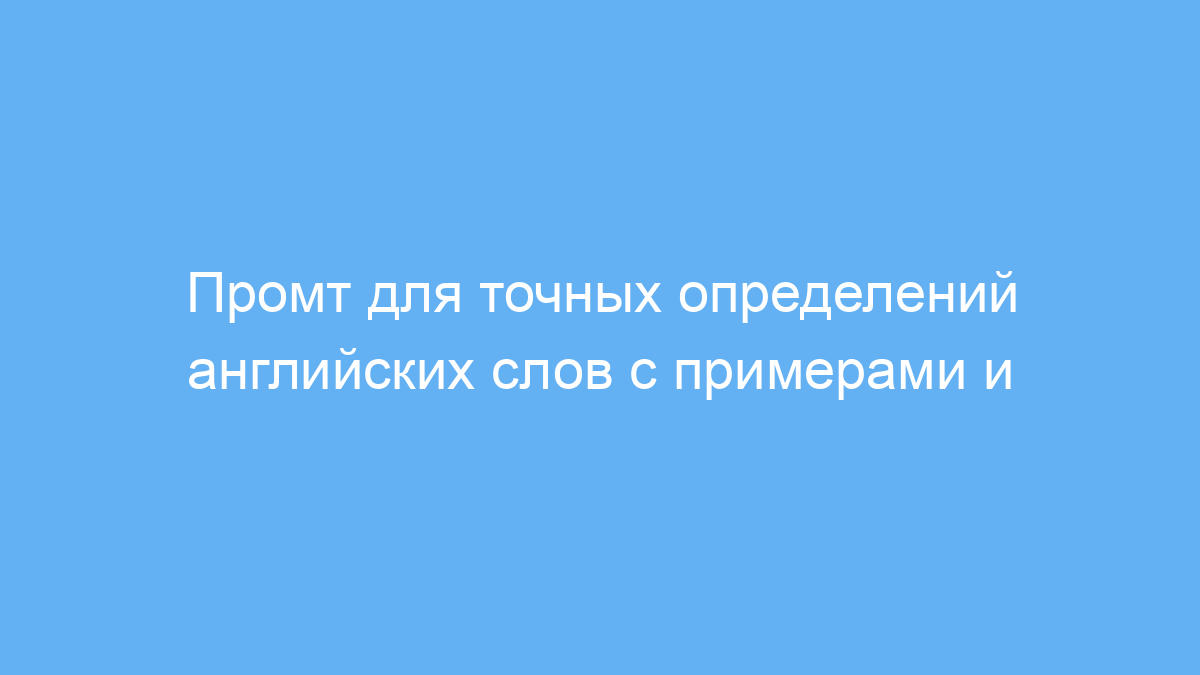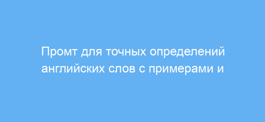 Промт работает так: пользователь присылает одно или несколько слов, разделённых запятой, а нейросеть отвечает точным определением каждого слова на английском языке, приводит три примера применений в разных контекстах, объясняет этимологию и сравнивает похожие слова. При этом нейросеть отдаёт предпочтение точности, даже если определения становятся сложнее. Если в сообщении есть дополнительные указания в квадратных скобках, система обязательно следует им.