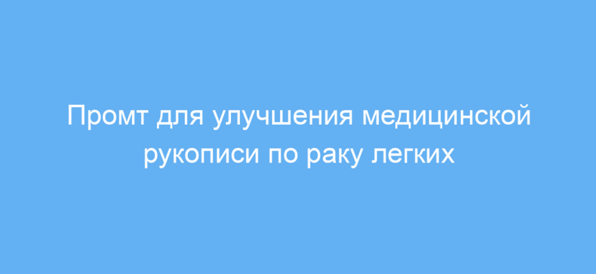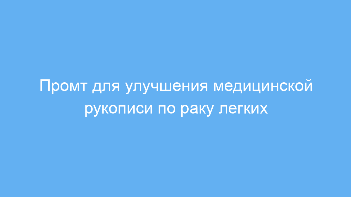 Данный промт предназначен для научных сотрудников, врачей-онкологов и медицинских редакторов, которые занимаются подготовкой или редактированием рукописей по теме рака легких. Он помогает улучшить качество текста, делая акцент на точности терминологии, логической структуре и содержательности материала.