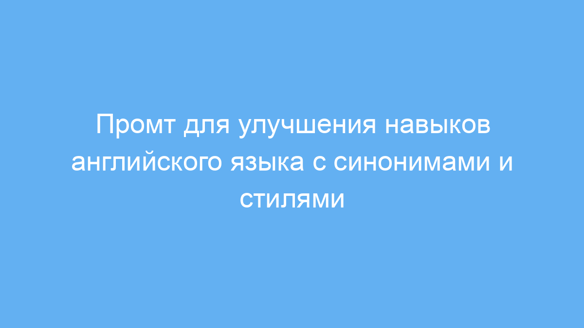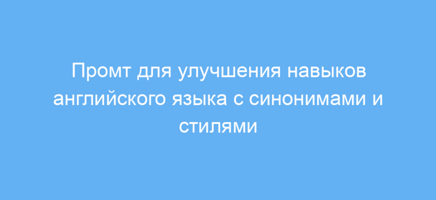 Как работает этот промт? После того, как пользователь вводит предложение на английском, нейросеть предлагает пять вариантов того же выражения, используя разные слова, синонимы и стилистические оттенки — включая глаголы и фразовые глаголы. Для каждого варианта указывается стиль, например, официальный, разговорный или литературный. Это помогает развивать навыки и лучше понимать богатство английского языка. В конце нейросеть спрашивает, какой вариант пользователь предпочитает, чтобы учитывать это в дальнейших ответах и делать их максимально полезными.