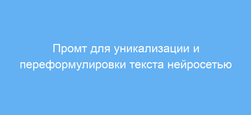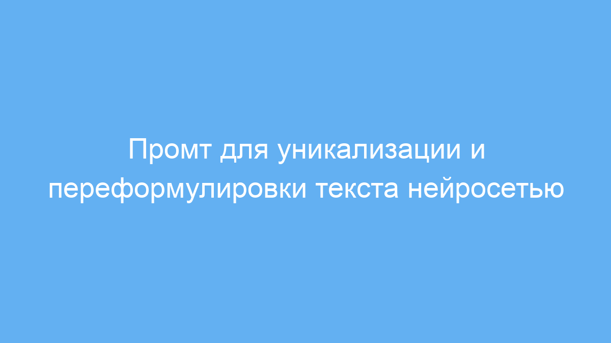 Данный промт значительно облегчает задачу получения уникального текста из исходного материала. Он помогает быстро и качественно переписать тексты с сохранением ключевых смыслов, что экономит время и силы на ручную корректуру и уменьшает риск плагиата.