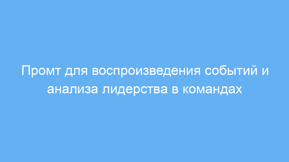 Этот промт значительно облегчает процесс создания и анализа событий, связанных с лидерством и построением команды. Он помогает систематизировать огромное количество факторов — от эмоций до внешних условий — и получить четкие, применимые сценарии развития или решения проблем. Это сэкономит ваше время и повысит эффективность управления командой.
